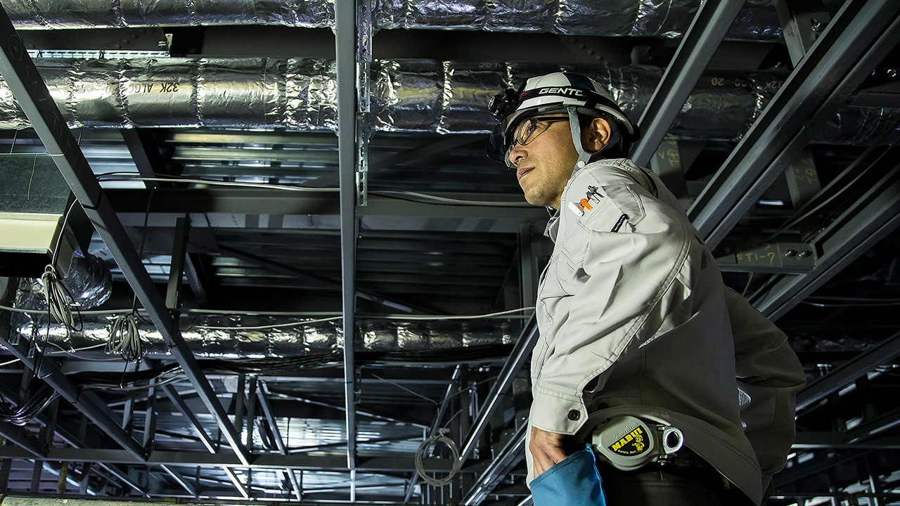 オフィスビルや商業施設、病院、学校、工場など、さまざまな建物の空調設備をはじめ、給水・排水、防災、ガス設備まで幅広く設計・施工管理しています。空調では、温度や湿度のバランス調整、気流のコントロール、空気の清浄化や防塵対策など、快適でクリーンな空間を実現。これらはすべて、最先端の技術と豊富なノウハウを活かして提供しています。人々が安心して過ごせる快適な建物環境を支えるため、私たちは設備のプロとして日々取り組んでいます。