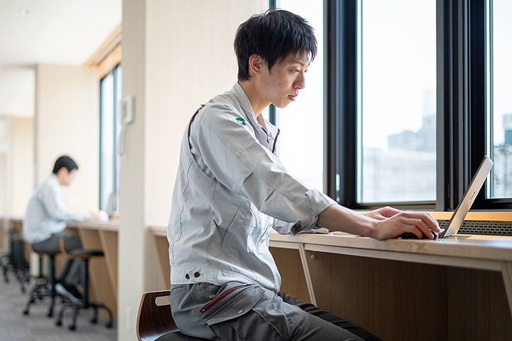 2025年に竣工した新しいオフィスは、ZEB(ネット・ゼロ・エネルギー・ビル)工法で建てられており、快適さと環境への配慮を両立しています。自然光や断熱性能を活かした設計で一年中過ごしやすく、最新の省エネ設備によりエネルギー消費を大幅に削減。働きやすく、地球にもやさしいオフィスです。