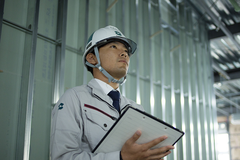 私にとって当面の課題は、換気についてもっと経験を積むことだと考えています。水まわりの設備については修理も補修もだいぶ先が読めるようになったのですが、換気関連の設備はまだまだ調べてみないと判らないことが多く、この点を強化することでもっと迅速に、精度良くお客さまの思いに応えられると思います。当社では、営業も、現場代理人も、「先を読む力」が常に問われる仕事といえるので、こうしたスキルアップは生涯のテーマといえるかもしれません。幸いに、なんでも気軽に相談できる当社の職場環境は入社したときから少しも変わっていないので、ベテランの先輩たちの知識・技術だけでなくその「洞察力」もどんどん吸収していきたいですね。